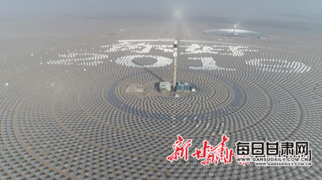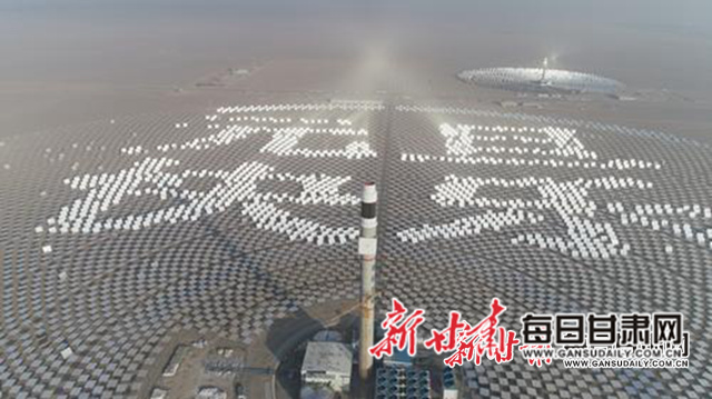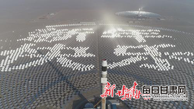 每日甘肃网敦煌1月2日讯(甘肃日报记者孙海峰通讯员周斌全)2019年第一天,在甘肃敦煌光电产业园区百兆瓦级熔盐塔式光热电站,由定日镜拼组而成的“元旦快乐”“新年快乐”“你好2019”等大幅文字,熠熠生辉,向全国人民送上“最大的”新年祝福。据了解,该电站镜场面积7.8平方公里,共有1.2万余面定日镜,每面定日镜115平方米,“元旦快乐”“新年快乐”“你好2019”每组文字由上千面定日镜拼组而成。