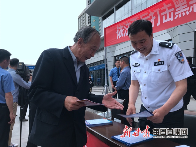 活动中记者了解到,由兰州铁路公安局侦办的“7·19”涉恶组织残疾人乞讨案,查证核实各类刑事案件18起,抓获犯罪嫌疑人8名,解救被害残疾聋哑人17名,有效净化了车站周边秩序。目前,该案已进入审查公诉阶段。兰州铁路公安局刑侦处副处长曹勇表示,通过火车站这个人流密集型窗口,向群众宣传“扫黑除恶”常识,那么群众出门在外遇上黑恶势力欺凌可就近向铁路公安举报。