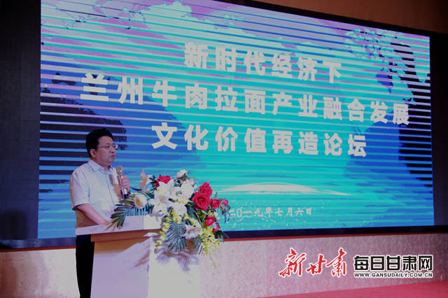 甘肃新闻网讯(新甘肃·甘肃新闻网记者李杨)7月6日下午,作为第25届中国兰州投资贸易洽谈会相关主题论坛之一的“新经济时代下兰州牛肉拉面产业融合发展文化价值再造主题论坛”在兰州市举行。来自国内外近80位甘肃驻外陇商会精英代表们齐聚一堂,为兰州牛肉面打造“1+N(及其他产业)”产业链贡献“金点子”,助力兰州牛肉面在新经济时代下“走向远方”。